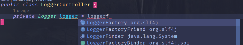 private Logger logger = LoggerFactory.getLogger(LoggerController.class);