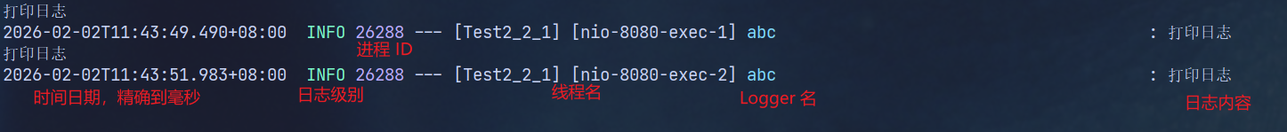 | 3 | 进程 ID | 日志所属应用进程的唯一标识,多实例部署时可区分不同进程的日志 |