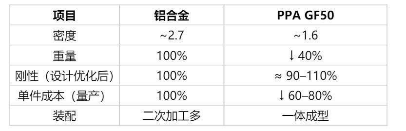 这种情况,非常适合以塑代铝,而且是"结构级以塑代铝",不是那种装饰件。