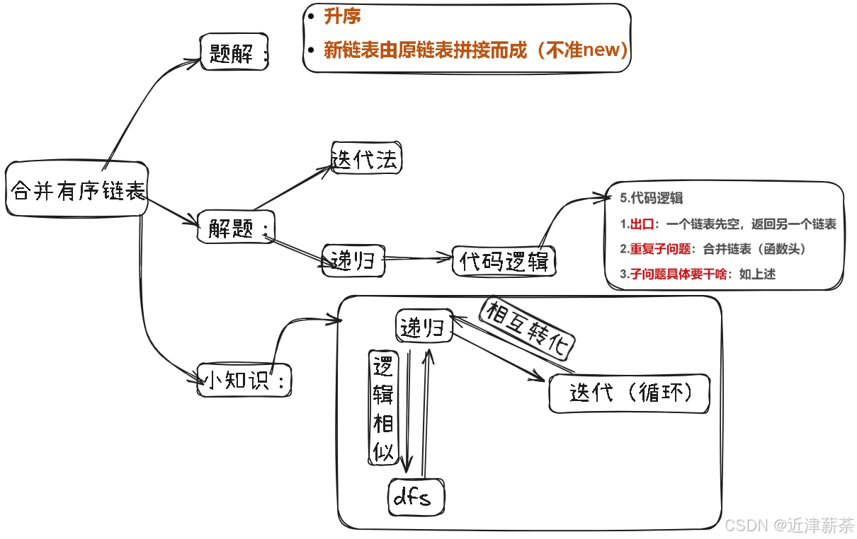 2.重复子问题:合并链表(函数头)