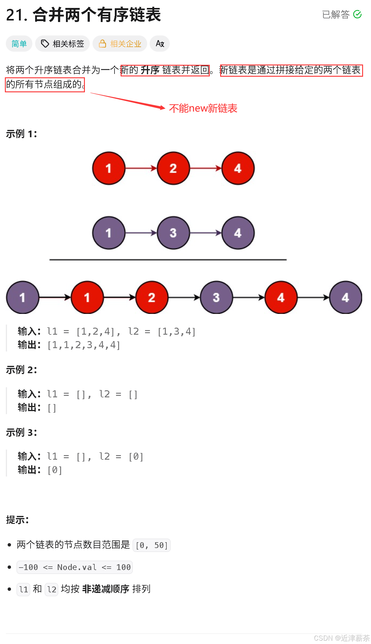 - 新链表由原链表拼接而成(不准new)