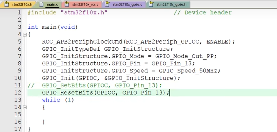 先使能gpio_c 时钟, 在RCC中。