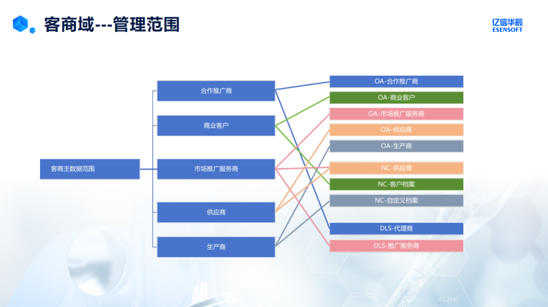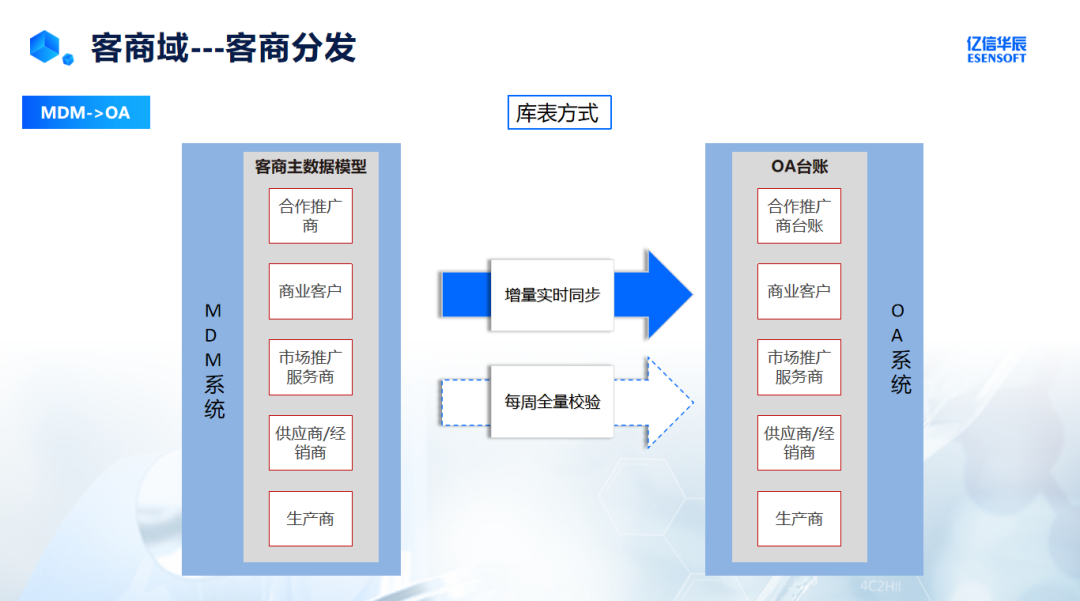 客商主数据需分发给多个下游系统,对接策略包括:
