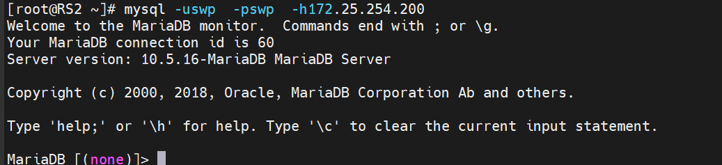 示例:成功进入 MariaDB monitor 表示代理成功。