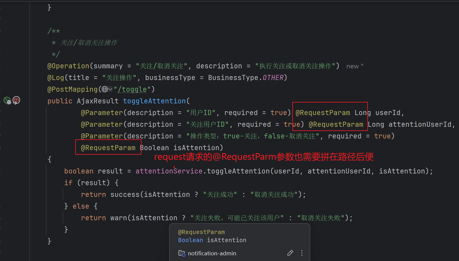 所以,@RequestParam 参数通常是放在 URL 路径之后 的查询字符串中,用 ? 分隔,多个参数用 & 连接