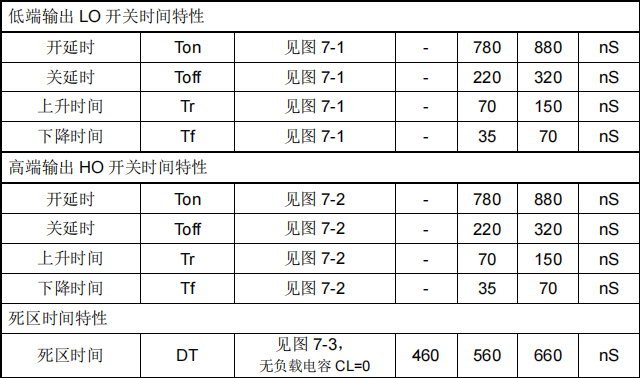 - 内部死区时间:560ns(典型)