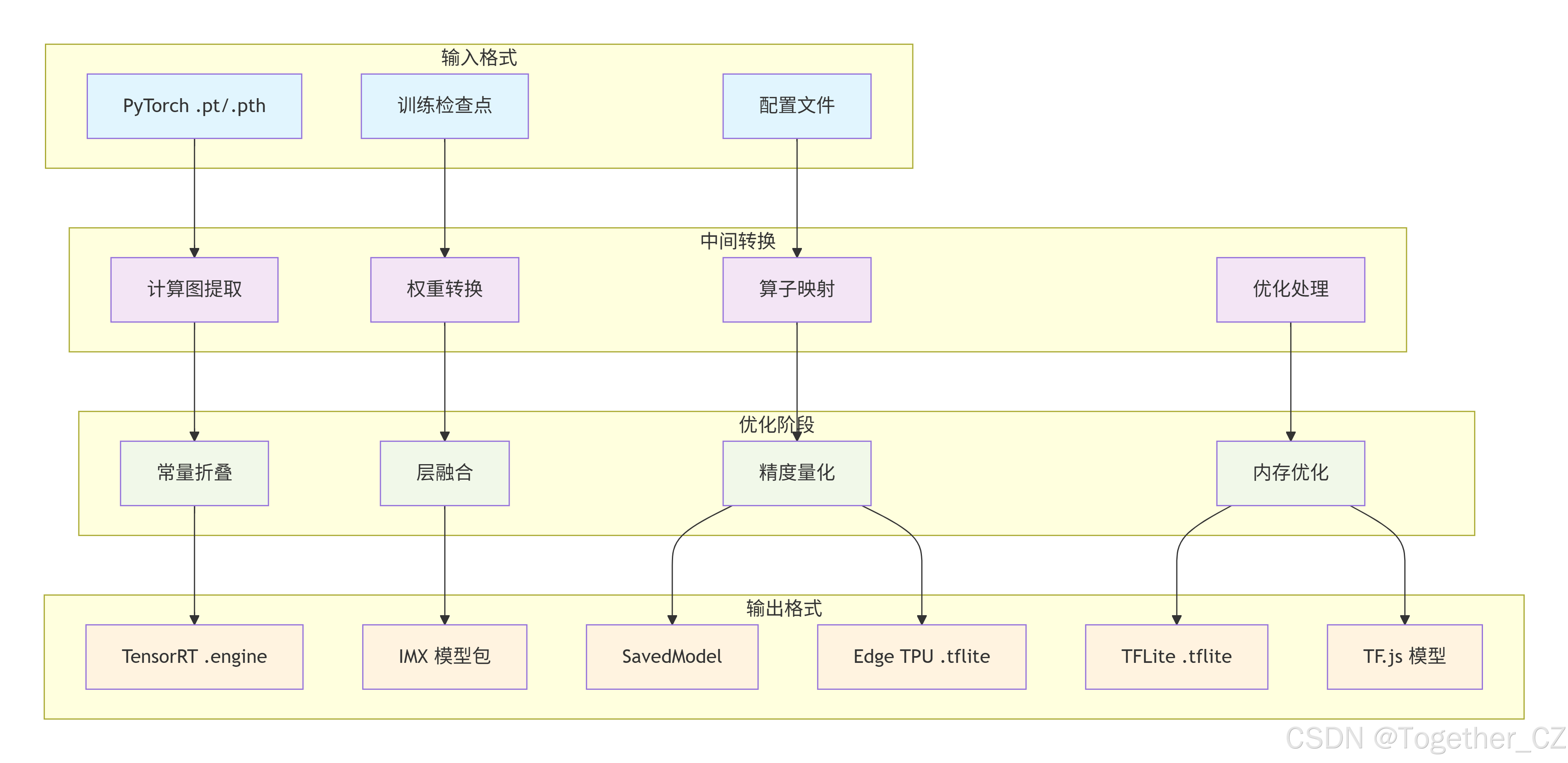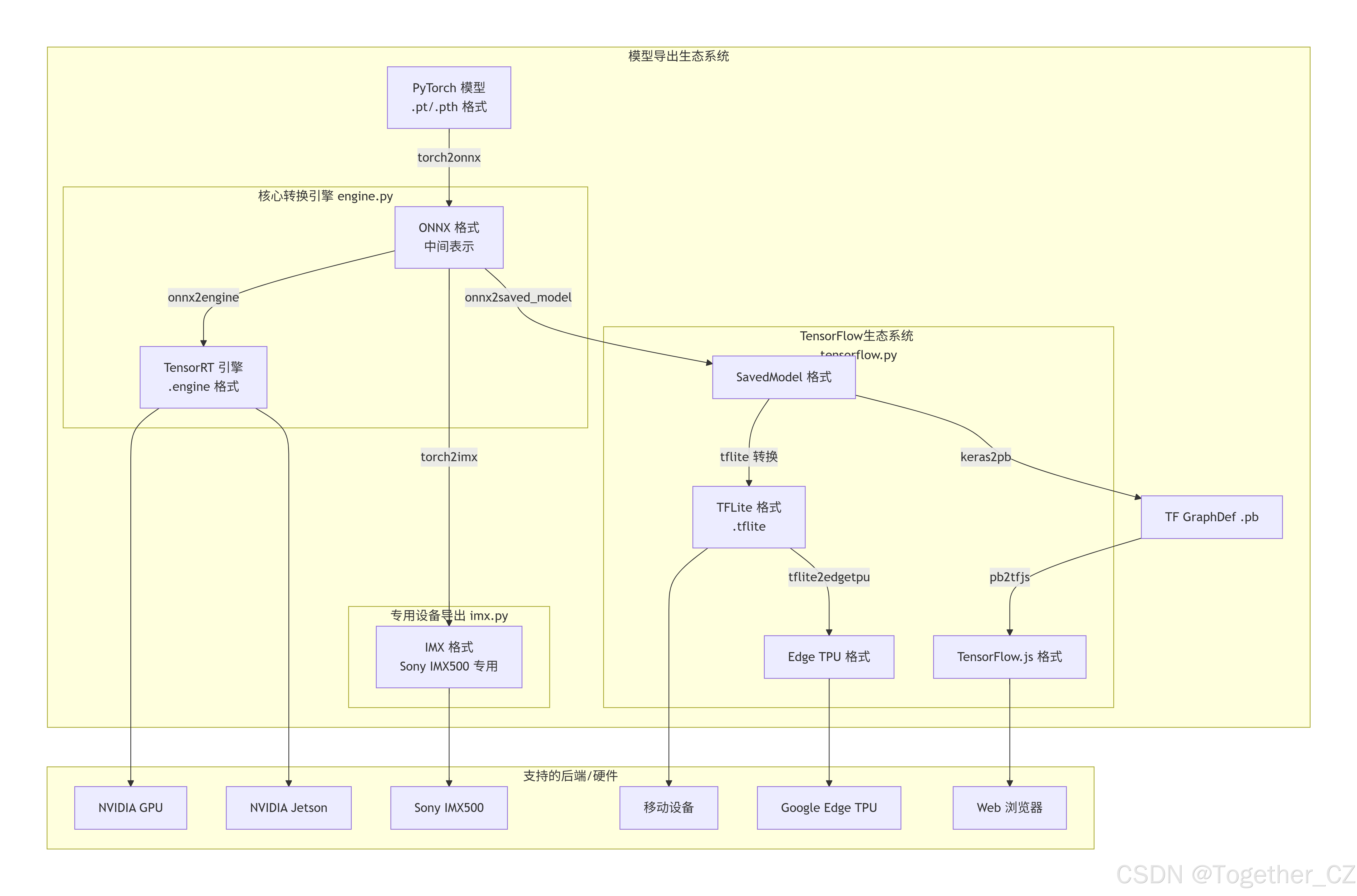 ONNX → 目标格式:各模块使用专用转换器进行格式映射
