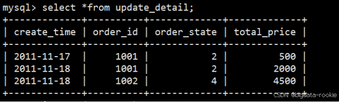 (3)查询结果,可以看到如果日期和订单相同则会进行覆盖操作。
