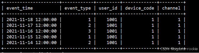 (3)查询数据,5条明细数据都在。此种模型的表用来存储所有历史明细数据。
