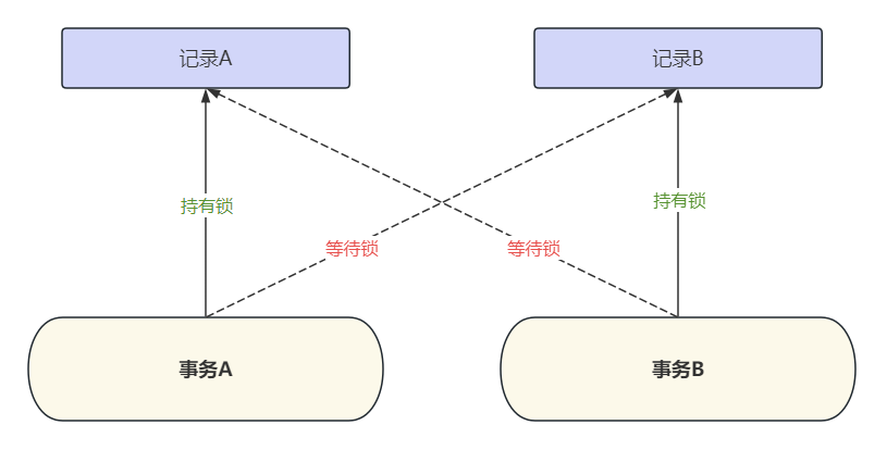 - 循环等待:多个事务形成锁的循环依赖(如 A 等 B 的锁,B 等 A 的锁)。