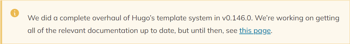 从 Hugo v0.146.0 版本开始,模板系统被彻底重构了(重写了底层逻辑),官方正在努力更新所有相关文档,也就是说,当前文档可能不完整或滞后,但核心规则仍以这里的 Lookup Order 为主