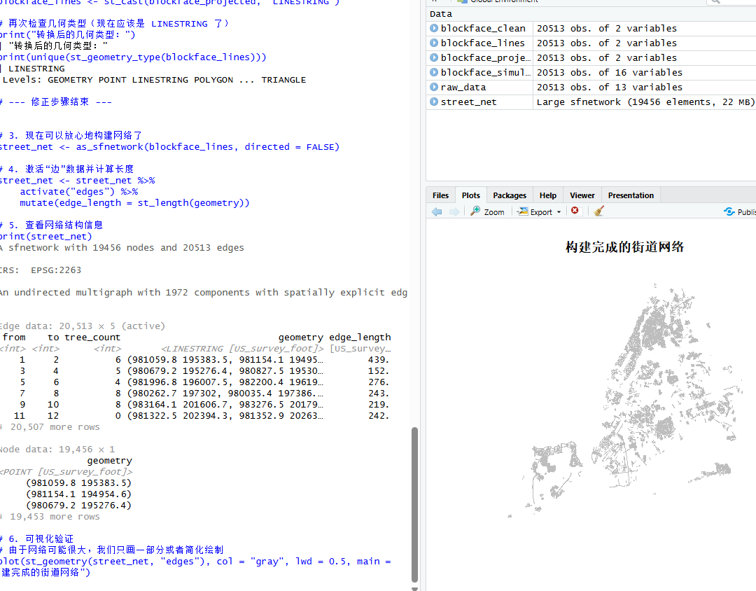 通过这段代码,我们成功地将一份复杂的原始地理文件,转化为了一个干净、单位统一且适合数学计算的 R 对象,为接下来构建精确的空间网络奠定了坚实的基础。