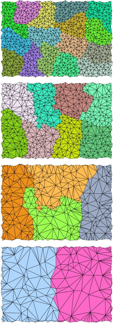 几何融合: 为了减少三角形数量,我们需要将相邻的多个 Cluster 合并,简化成更少量的 Cluster。