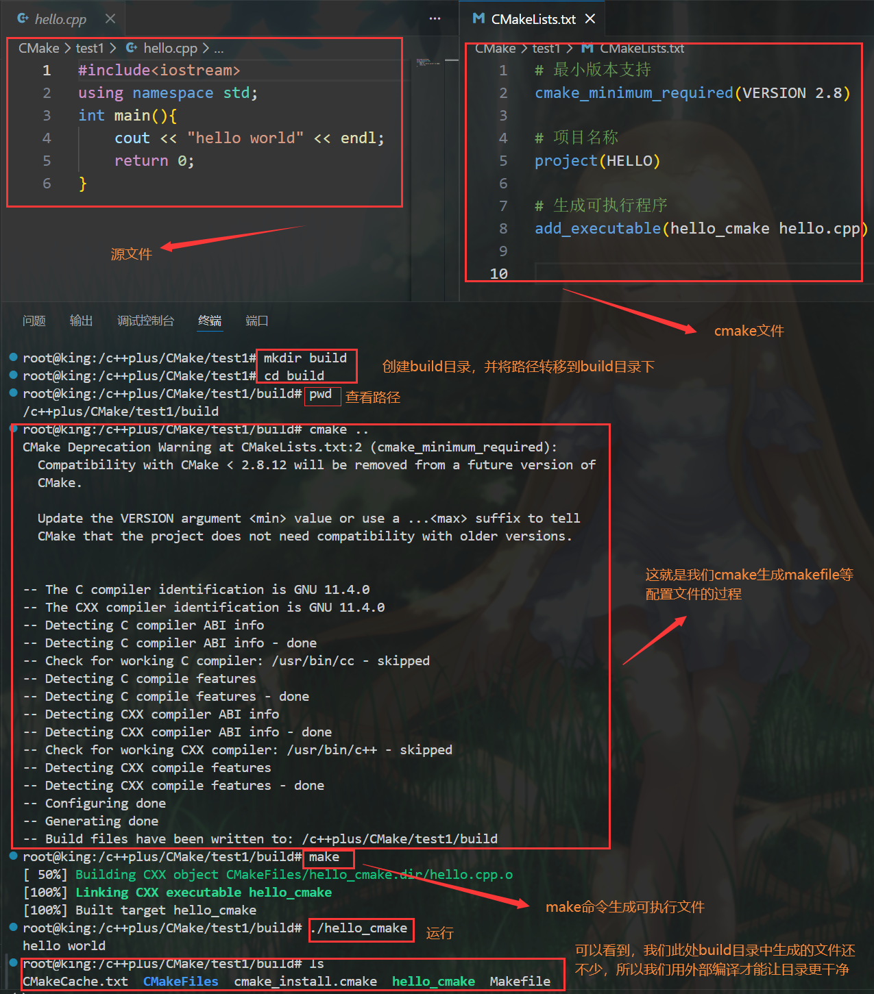 # 1、在当前目录下,创建一个 build 文件,用于存储生成中间文件