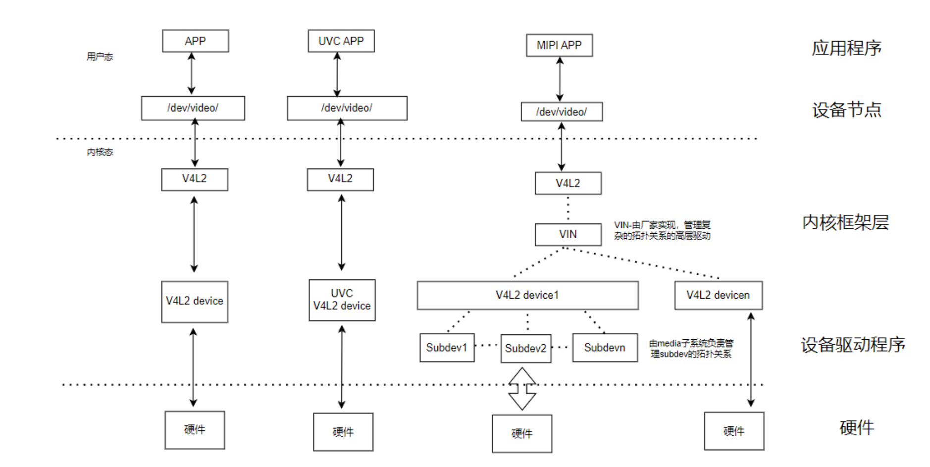 | Async Sub Device | 在Media Controller结构下注册的V4L2异步子设备,例 |