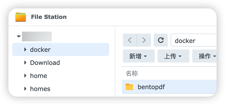 首先在"File Station"的"docker"里创建一个"bentopdf"文件夹。
