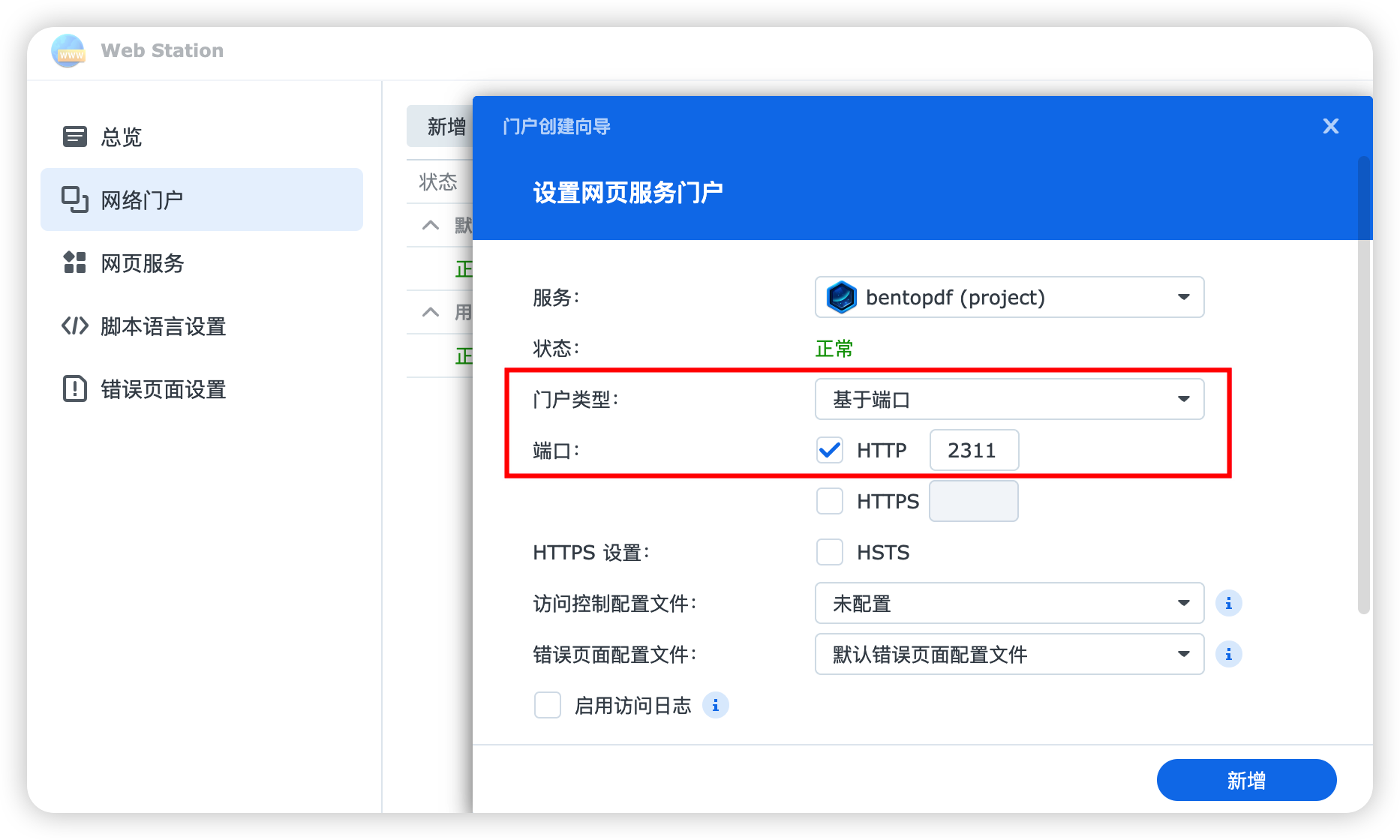 接下来打开"Web Station"新增一个"网络门户"。