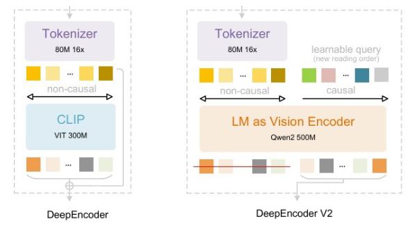 而新模型的编码器 DeepEncoder V2 正是为了模拟这种逻辑关系:它在编码阶段重排序视觉信息,让AI的内部表示更符合文本语义,然后再把这样的"逻辑顺序"输入解码器做最终解释。这种方式对处理复杂表格、公式甚至多栏布局都有优势,比传统OCR更"懂结构"。