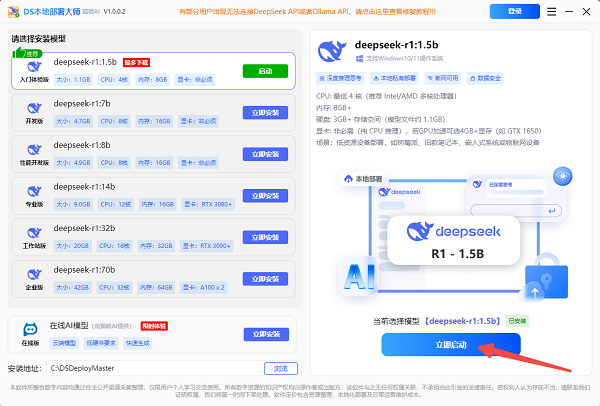 而如果你想低门槛部署模型,不想写命令行、不熟环境配置,可以搭配"DS本地部署大师"这类工具来搞定。它能把模型下载、环境配置、启动流程集中成图形化操作,跑起来比较轻松,非常适合对部署细节不太熟悉的用户。