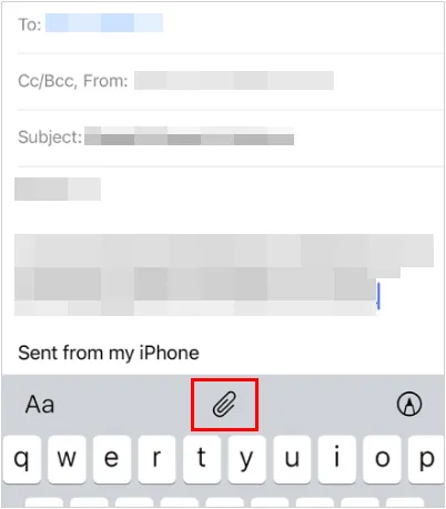 点击并按住电子邮件正文以调出格式选项,然后点击回形针图标。导航到音频文件的位置并选择它。