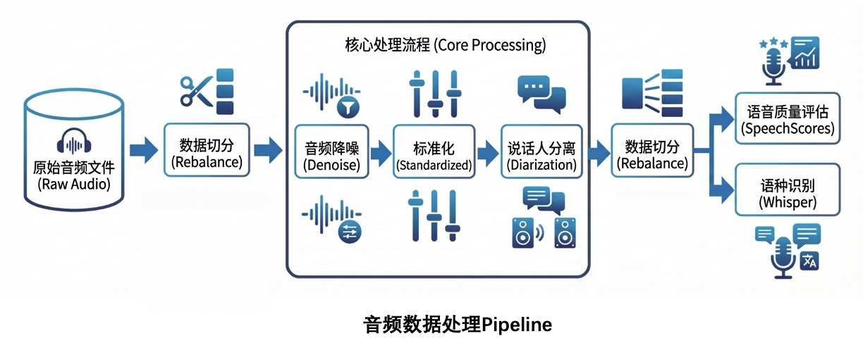 依托 MaxCompute 自研分布式 AI 计算引擎 MaxFrame,实现对音视频数据进行标准化、切分、语音识别等高效处理。 MaxFrame 支持通过 Rebalance 实现数据切分、并发控制,从而在内存与吞吐之间取得平衡,放大性能收益。