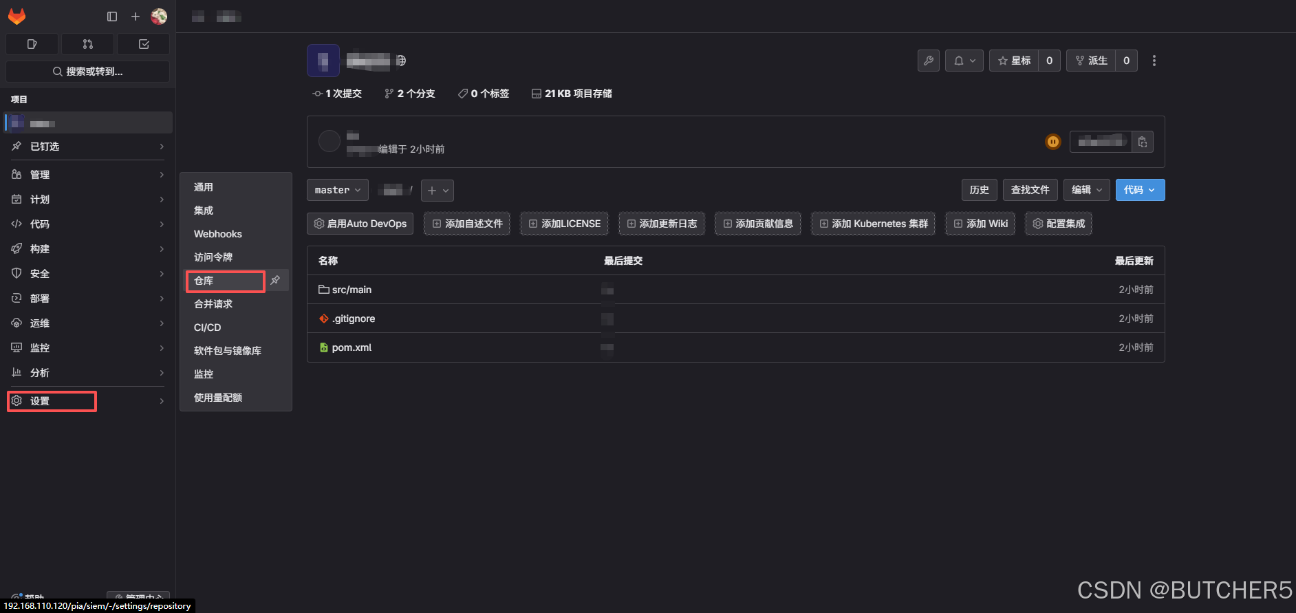 gitlab默认分支是main分支,如果想修改,需要到项目设置里进行修改,具体步骤如下: