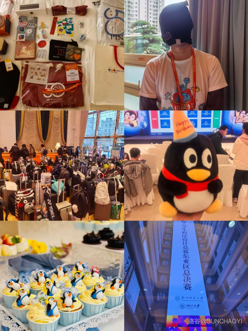 清点完各种物资,然后跑去佬的房间玩(加训神秘贪心题,然后被硬控)。晚上前往腾讯交流会去当学术"大拿",吃饱了!互动环节套圈一发入魂,获得了一只可爱的生日版 QQ,为我们 CD 机房又增添了一员大将!