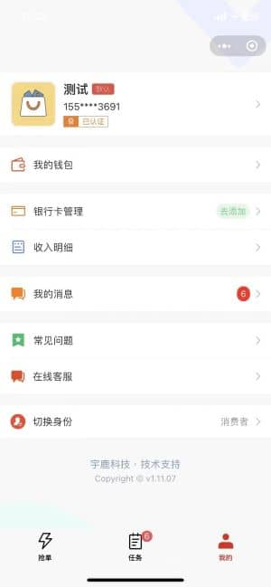 - 收益与账户管理"我的" 页面包含 "我的钱包""收入明细" 功能,可随时查看收入流水,支持银行卡绑定与提现。还有 "我的消息""常见问题""在线客服",帮助解决服务过程中的各类问题。