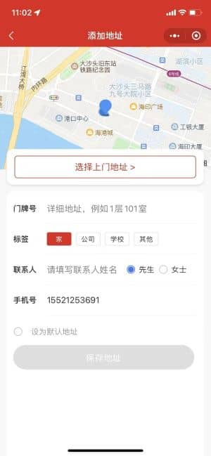 - 地址管理支持地图选点 + 手动填写详细地址,可设置 "家""公司" 等标签,并将常用地址设为默认地址,减少后续下单时的重复操作。