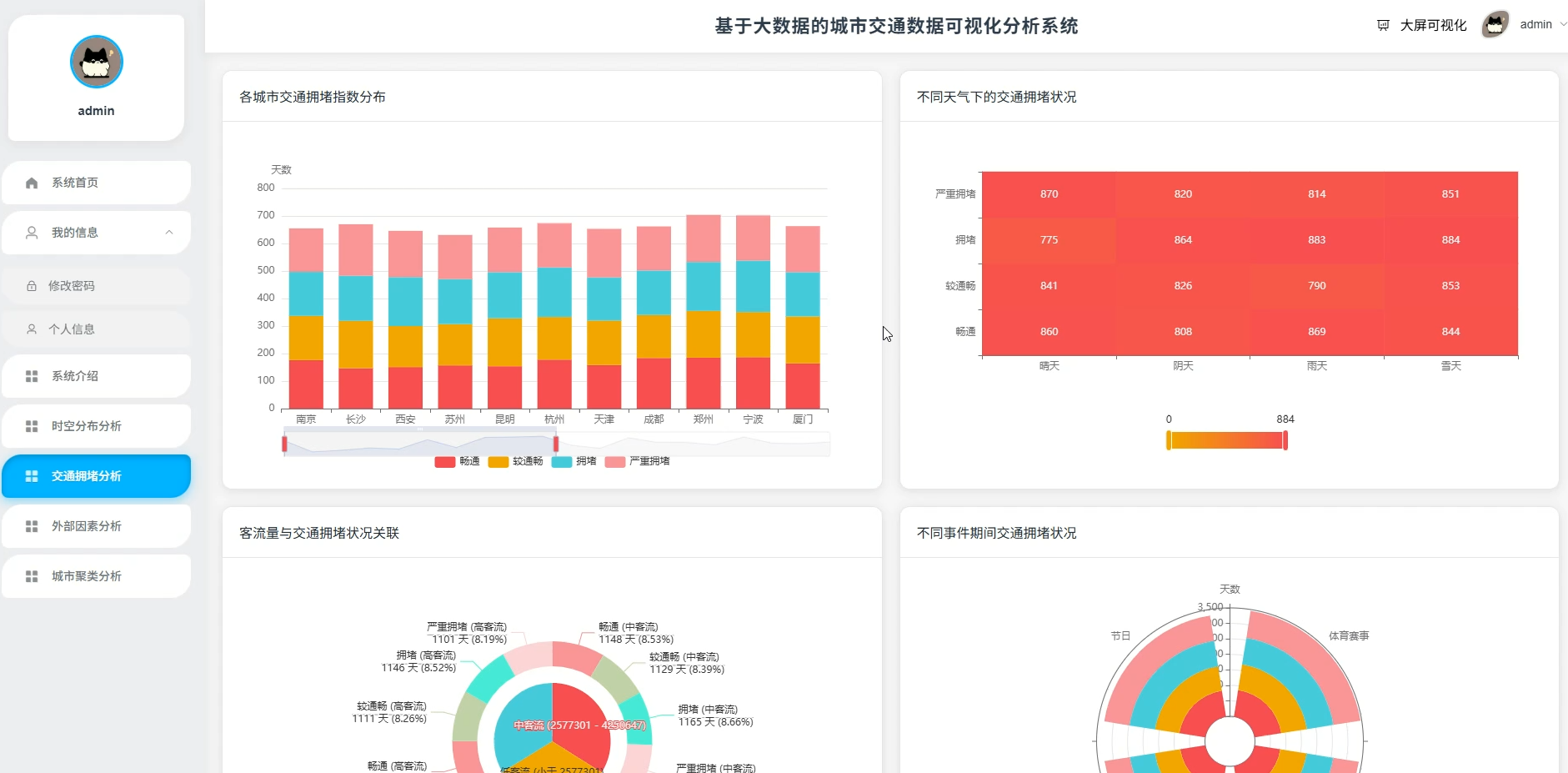 选题背景:现在城市里的车越来越多,上下班高峰堵得水泄不通已经是家常便饭,传统的交通管理方式主要靠人工统计或者简单的电子表格记录,面对海量出行数据时根本玩不转,处理速度慢不说还容易出错。这几年大数据技术慢慢普及开来,Hadoop和Spark这些工具在处理大规模数据上确实有两把刷子,能把以前几天才能算完的数据压缩到几分钟搞定。而且现在的毕设要求也越来越高,老师希望看到你能用上主流技术解决实际问题,而不是写个简单的信息管理系统交差。所以就想结合这个背景,做一个能处理真实交通数据、分析拥堵规律、还能把结果直观展示出来的系统,既符合技术趋势又能解决点实际痛点。