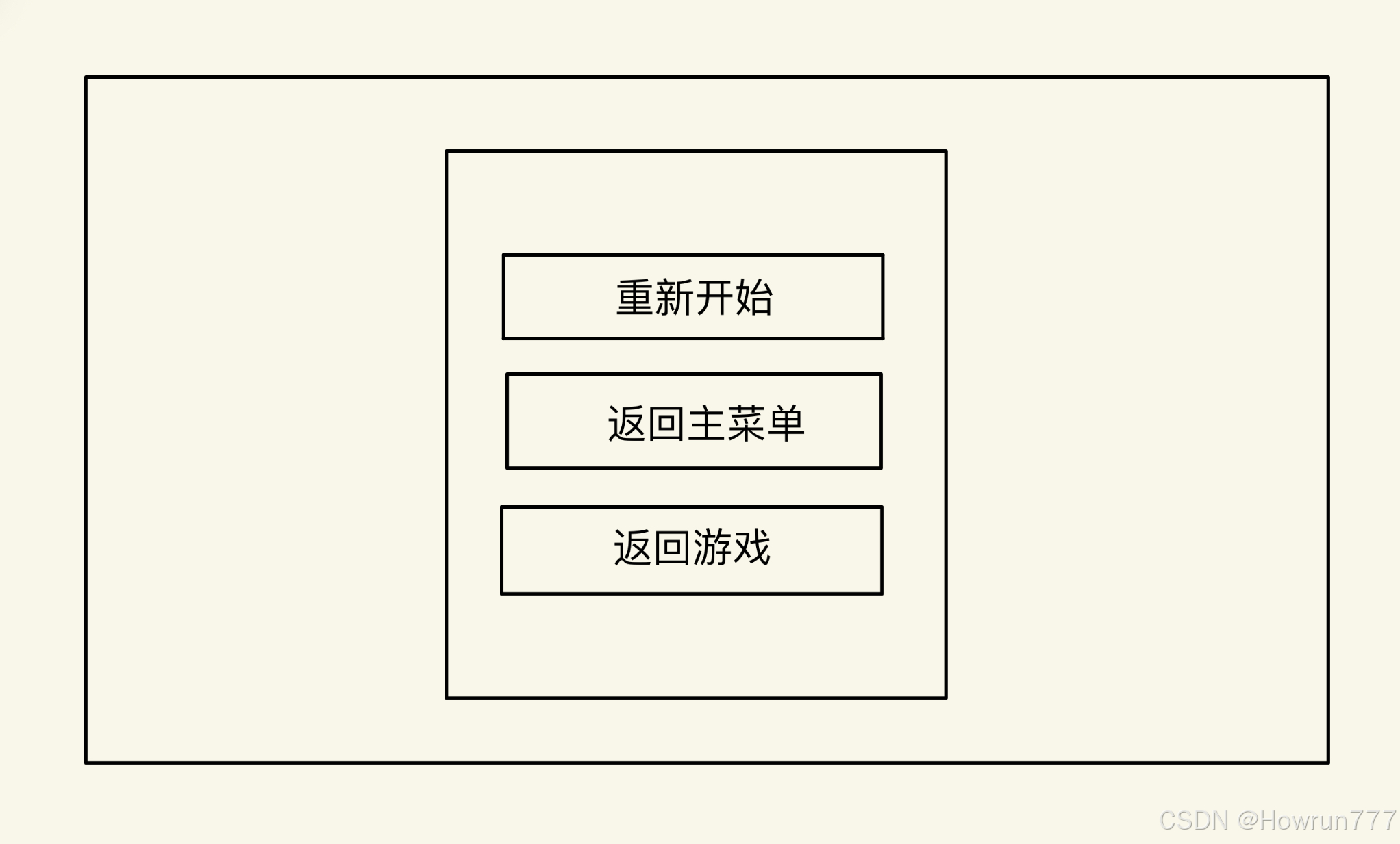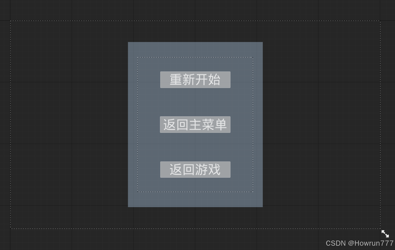 有三个按钮:重新开始;返回主菜单;返回游戏