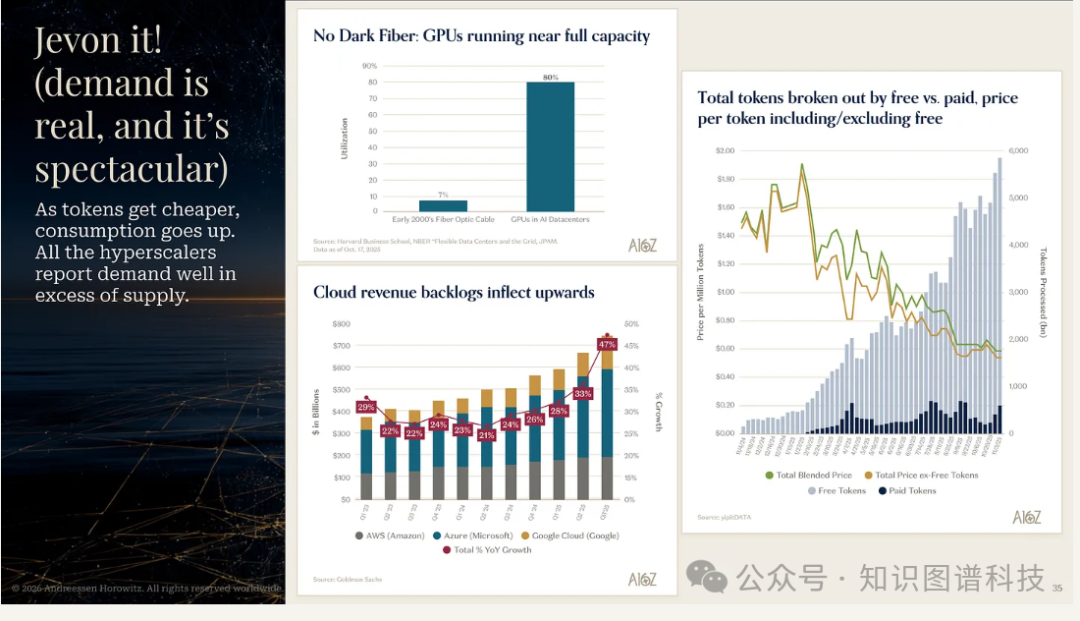 这些应用不直接按代币收费,而是通过提升业务效率、降低成本、增加收入来实现价值变现。成本下降使得更多边际应用场景变得经济可行,从而推动总需求爆炸式增长。