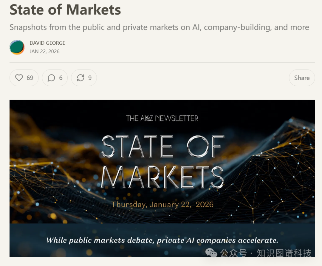 我们很高兴分享a16z的首份"市场状态"幻灯片报告。这份报告汇集了我们在私募和公募市场观察到的最新动态,展现了AI技术发展的当前状态,并深入分析为什么今天的赢家企业展现出截然不同的竞争优势。
