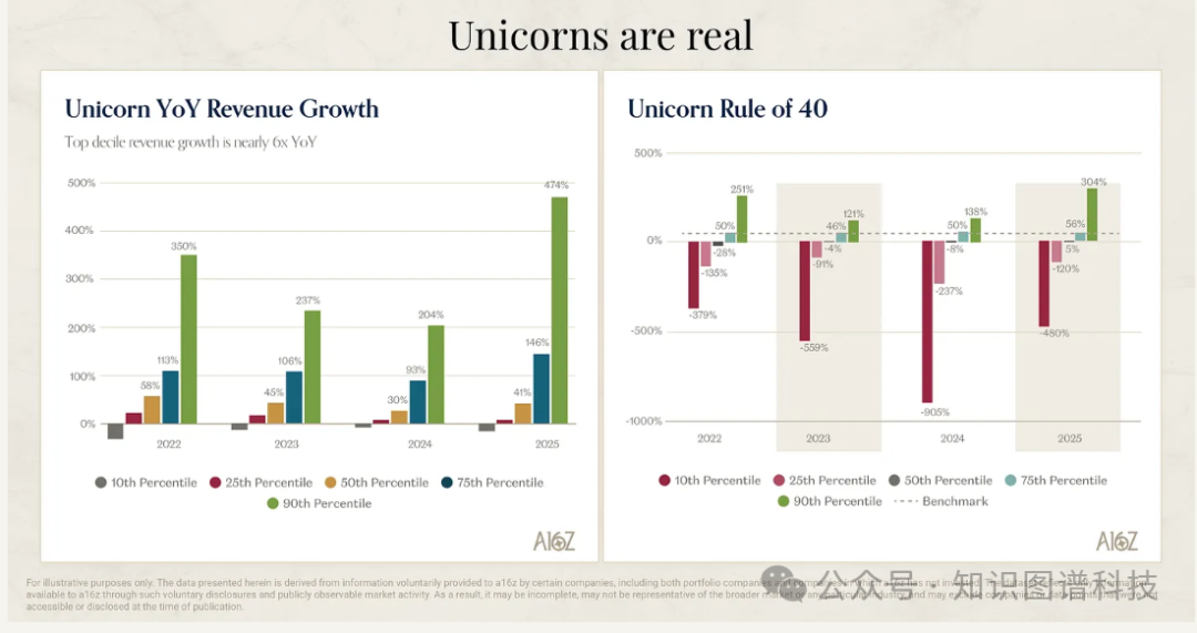 2025年,顶级四分位数和顶级十分位数公司的收入增长呈现爆炸式上涨,其增长速度远超其他所有企业。这种分化不是渐进式的,而是断崖式的。顶尖公司与普通公司之间的差距不再是线性扩大,而是呈现指数级放大。