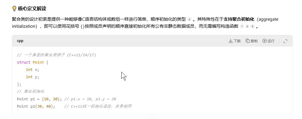 aggregate class 是c++中定义的一种特殊的类类型,它允许使用花括号{}来初始化其成员。