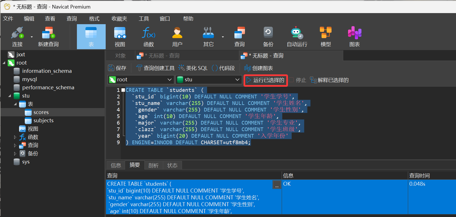 `age` int(10) DEFAULT NULL COMMENT '学生年龄',