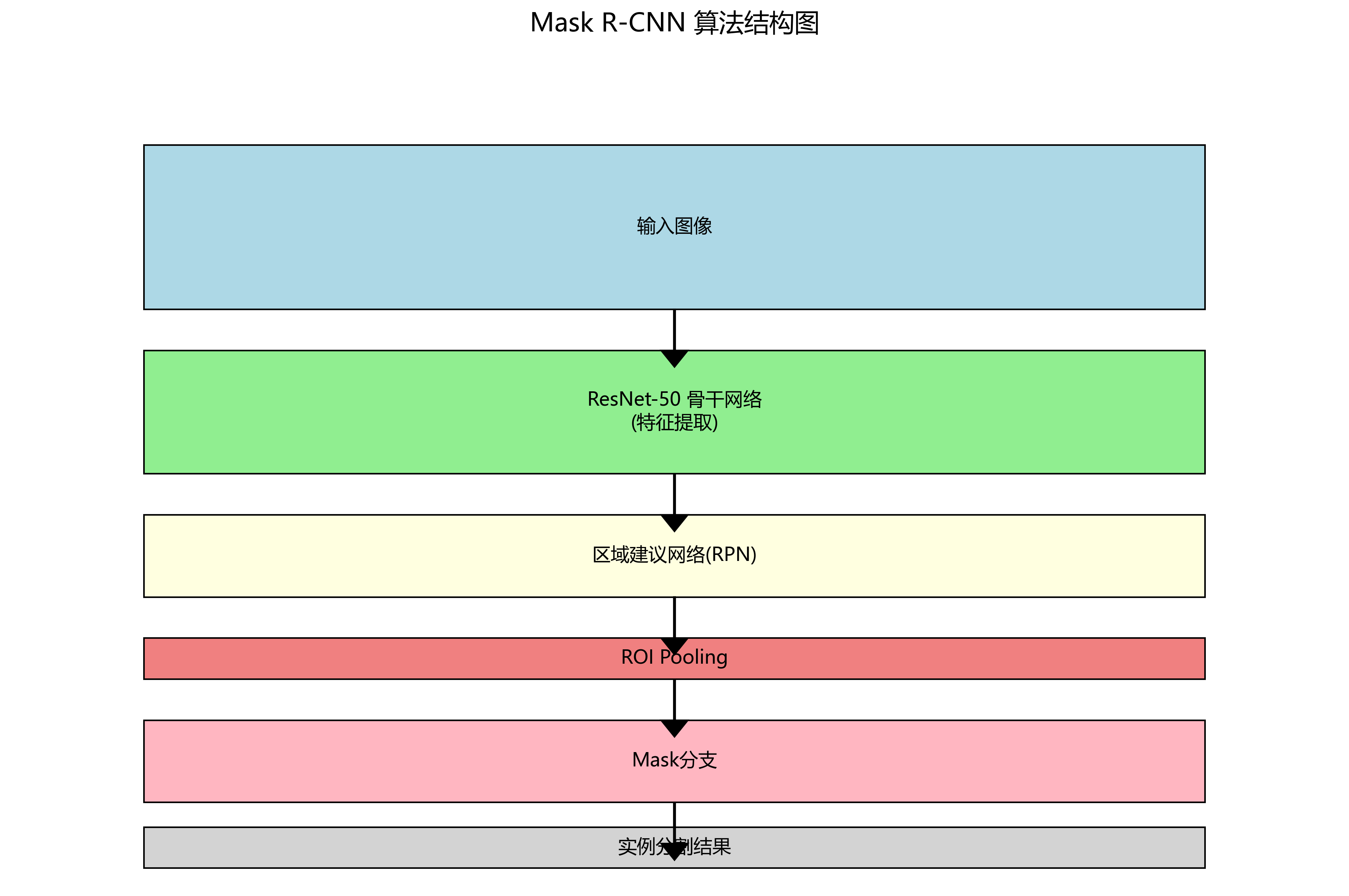 模型推理:将预处理后的图像输入训练好的Mask R-CNN模型,获取目标位置、类别和掩码。