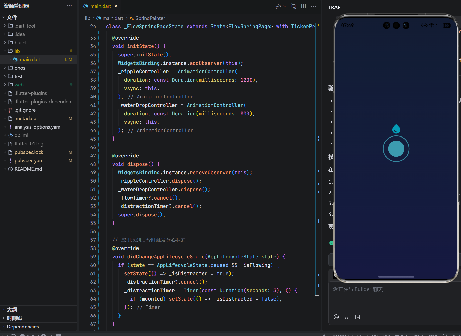 人文细节:每圈涟漪代表5分钟专注;外圈涟漪更淡更细,隐喻"时间沉淀";涟漪数量上限由rippleCount控制,避免视觉混乱