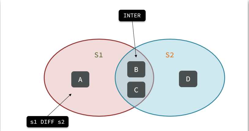 求s1与s2的不同:SDIFF s1 s2