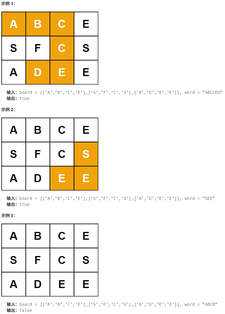 给定一个 m x n 二维字符网格 board 和一个字符串单词 word 。如果 word 存在于网格中,返回 true ;否则,返回 false 。