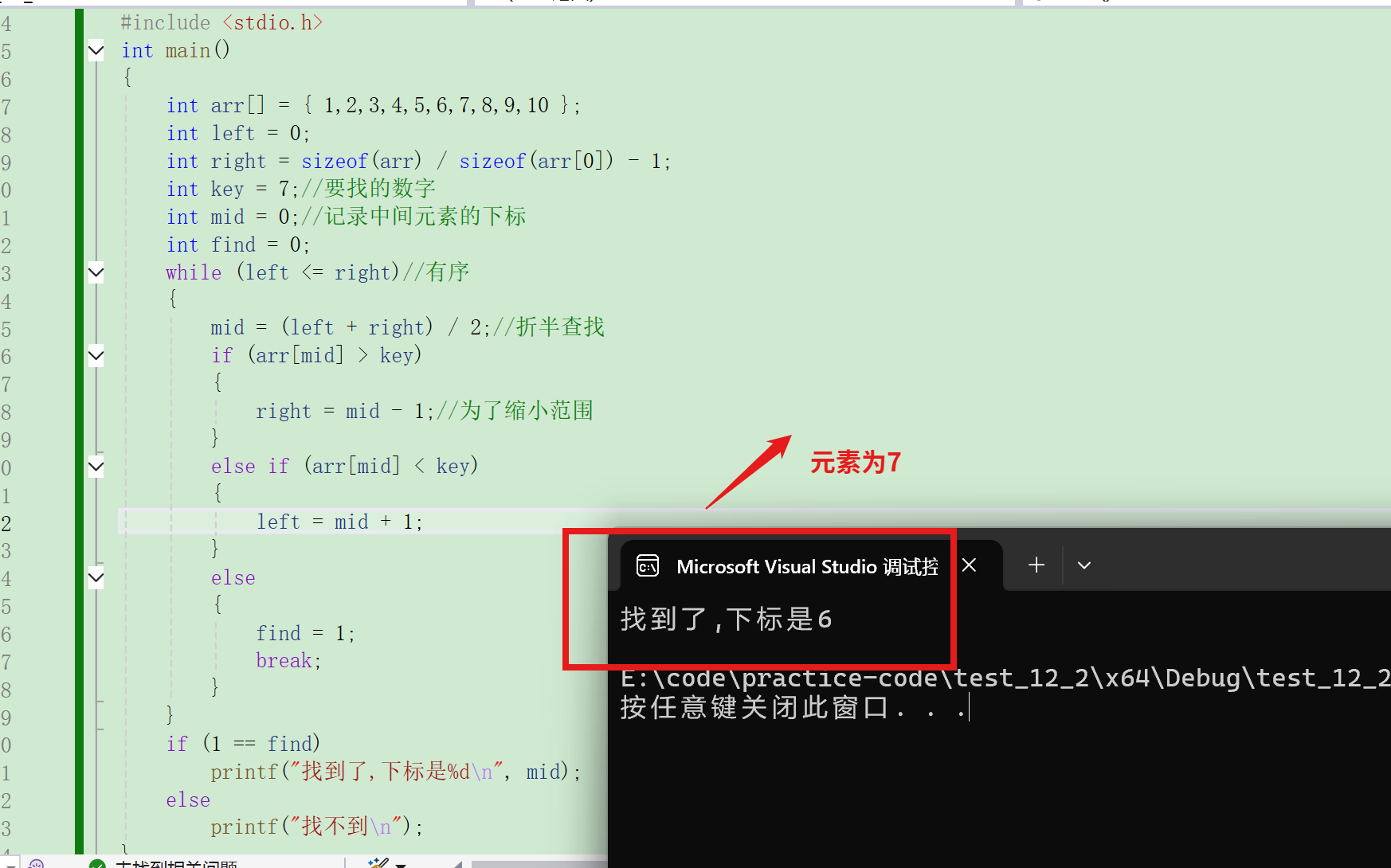 7.刚好找到。【下标的元素刚好=目标元素】,只进行了4次查找。