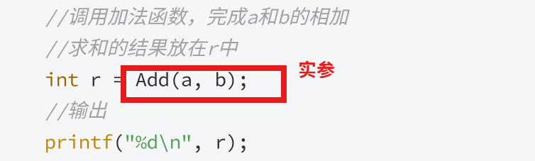 调⽤Add函数时,传递给函数的参数a和b,称为实际参数,简称实参。
