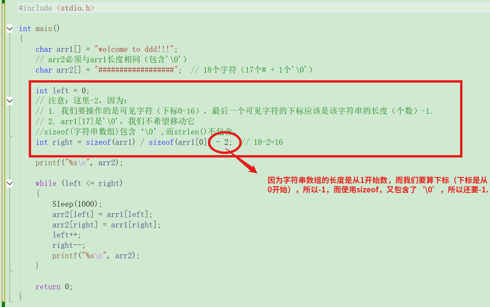 int right = sizeof(arr1) / sizeof(arr1[0]) - 2; // 18-2=16
