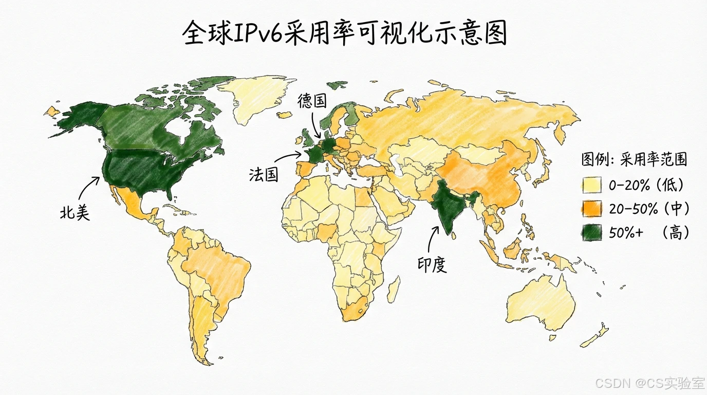 - 全球IPv6采用率已达到约45%的用户(根据谷歌统计)