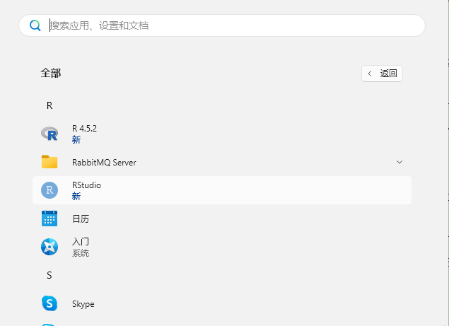 首先打开RStudio,从开始菜单中或桌面快捷方式打开都可以: