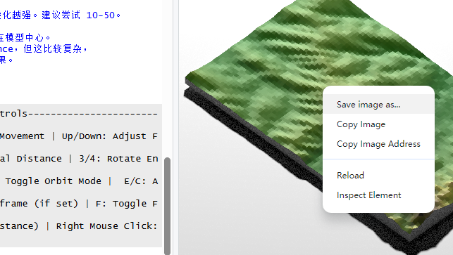 rayshader 提供了专门的函数,能以原始分辨率保存作品,确保每一个像素都清晰可见。如果刚刚运行完光线追踪渲染,图片显示在 Plots 面板里,则需要在 RStudio 右下角的 Plots 面板上方,点击右键,然后选择"Save Image as":