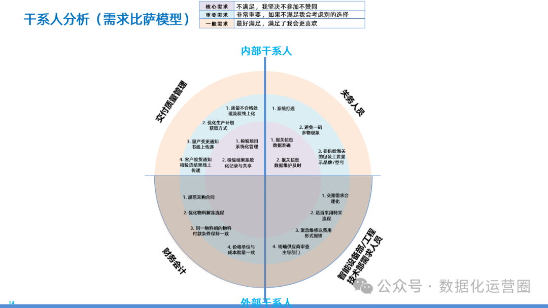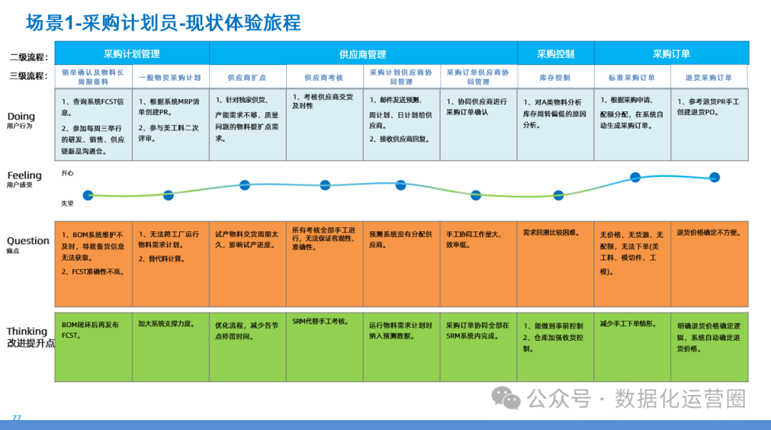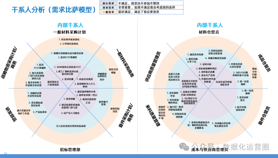 聚焦用户体验的全面需求调研部分深入探讨了甲方集团在数字化转型中对用户需求的深入理解和分析。通过对关键干系人进行画像,包括采购计划员、商务、研发、质量管理、仓库管理等不同角色,调研团队收集了他们对现有业务流程的感受、痛点和改进建议。这些调研结果揭示了用户在实际操作中遇到的问题,如系统操作复杂、数据不准确、流程效率低下等,为后续的业务流程优化和系统改进提供了宝贵的用户视角输入。