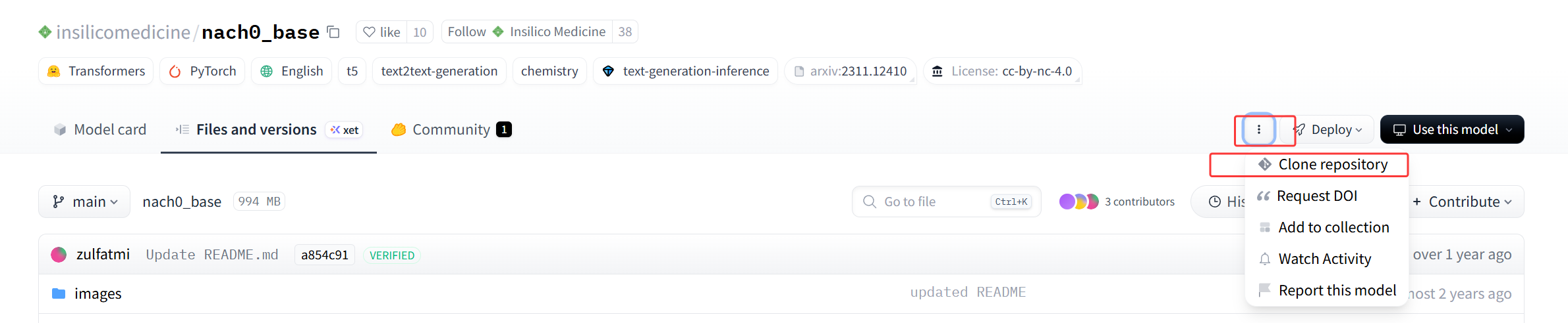 git clone https://huggingface.co/insilicomedicine/nach0_base