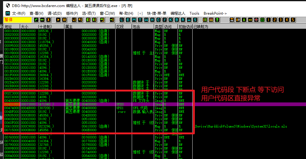 用户代码段 下断点 等下访问 用户代码区直接异常