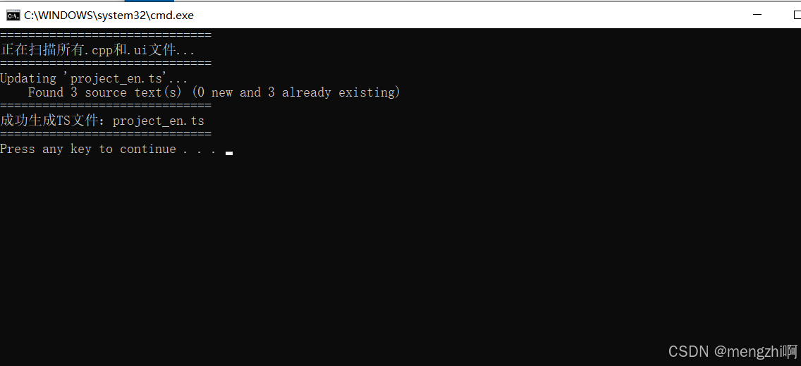 把一个文件夹下面所有的 cpp和.ui文件 的名字存在一个系统变量 里面,然后调用lupdate @filelist.tmp -ts project_en.ts来生成